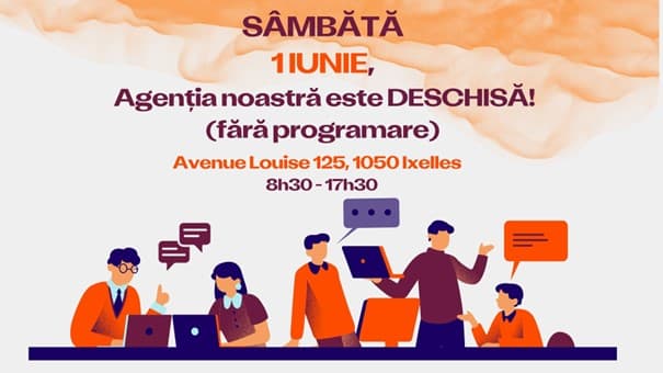 Sâmbătă, pe 1/06, agenția noastră din Bruxelles va fi deschisă și puteți veni fără programare.